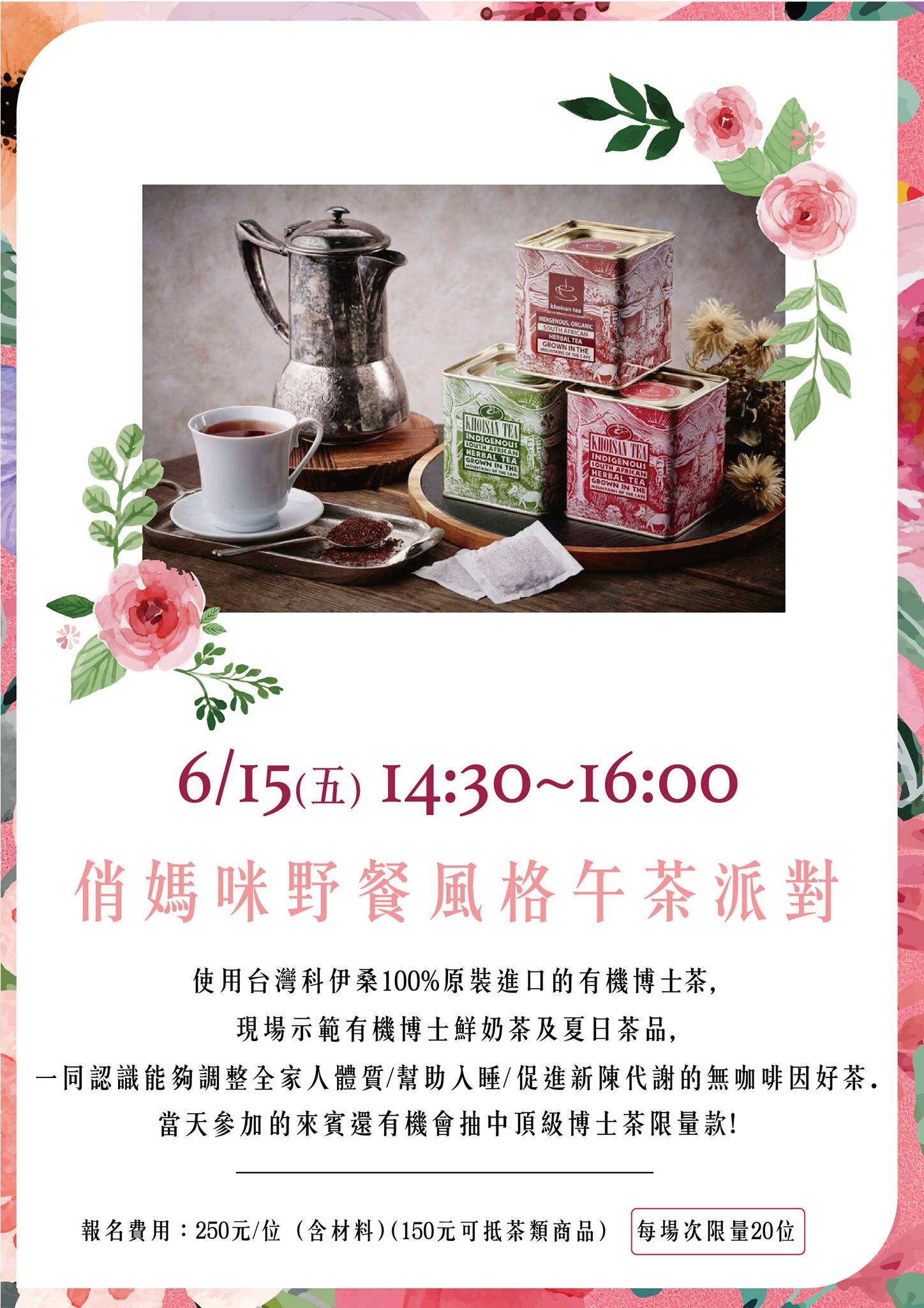 報名費用: 250元 (可抵當天博士茶類產品消費150元)